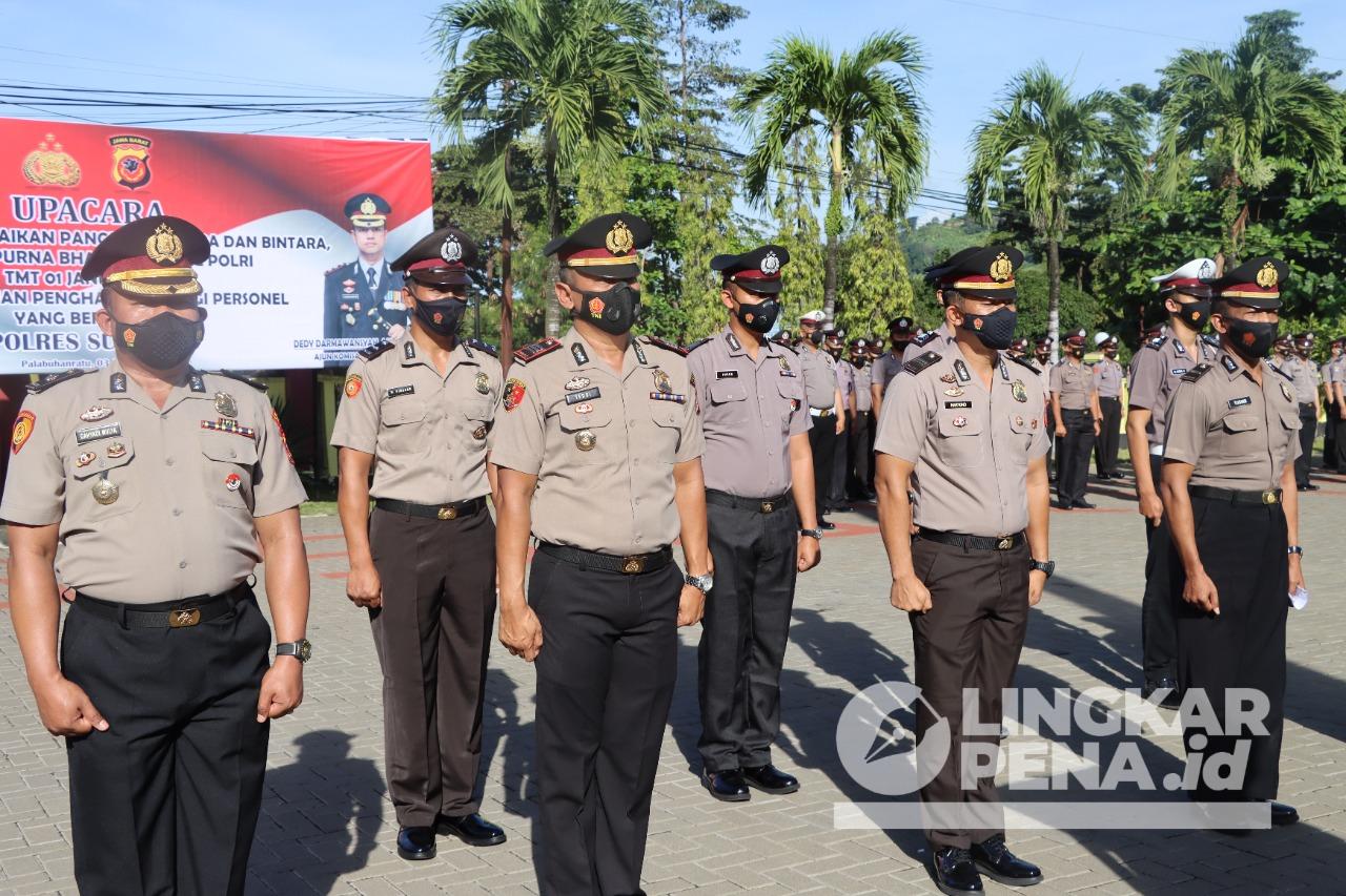 Melalui Kasi Humas Polres Sukabumi Ipda Aah Saepul Rohman menjelaskan, kenaikan pangkat reguler atas pengabdian Perwira dan Bintara terhitung per tanggal 1 Januari 2022 ada sebanyak 79 personel.
