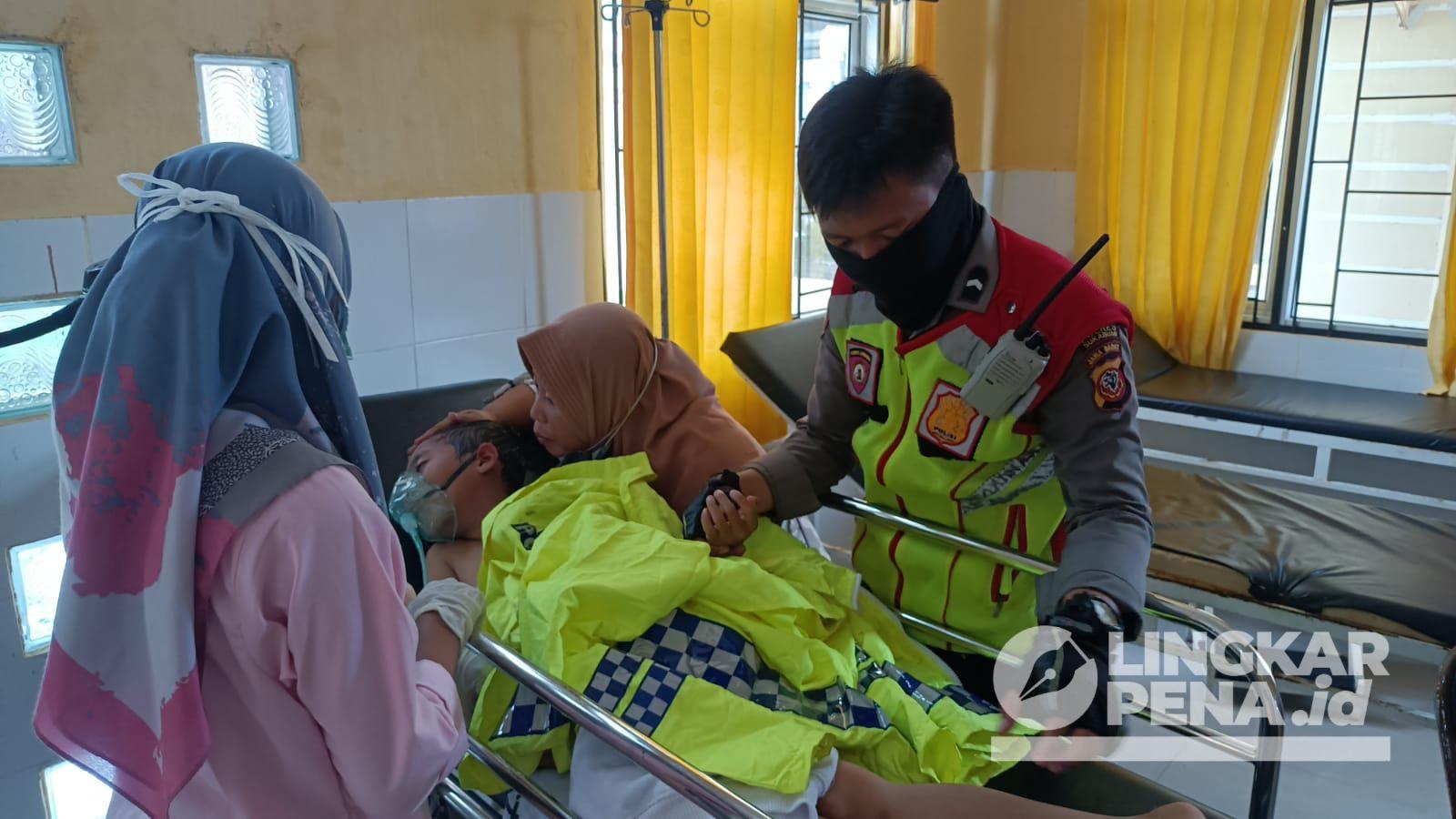 Sesampainya di darat langsung oleh anggota Polisi dibawa ke pos pam untuk diberikan pertolongan pertama dan kemudian dibawa ke Puskesmas Cisolok untuk penanganan selanjutnya dengan pengawalan petugas Satuan Samapta Polres Sukabumi.