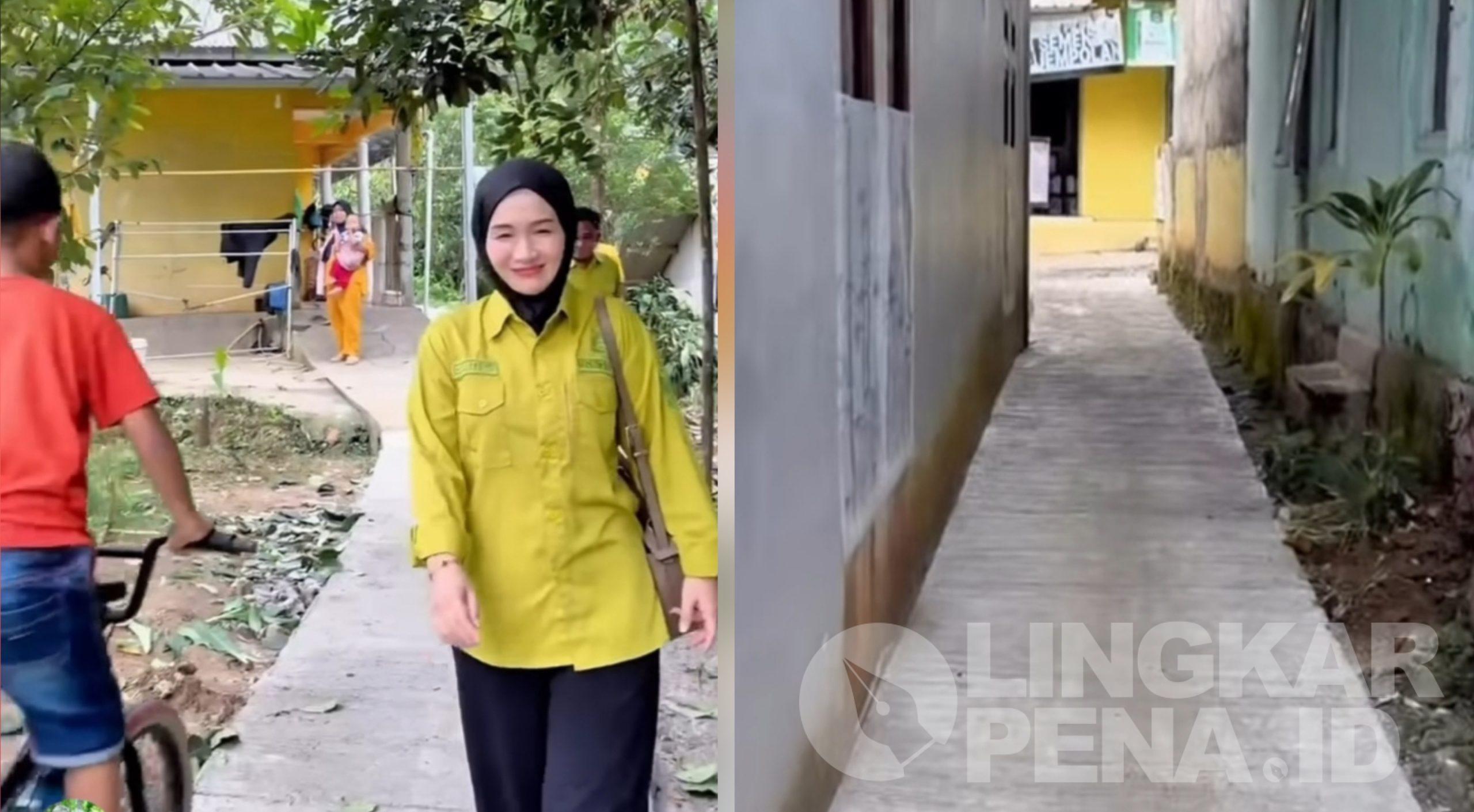 “Para wargi semua, saat ini saya sedang berada di Kampung Pasirlisung RT 01/01, Desa Sagaranten, Kecamatan Sagaranten, Kabupaten Sukabumi. Saat ini saya berada di satu gang yang baru saja selesai dilaksanakan pengerjaannya dengan menggunakan Dana Desa tahap pertama tahun 2026,” ujar Santi.