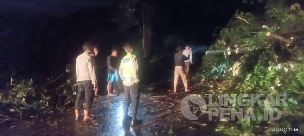 Longsor yang menghalangi bahu jalan selain material tanah dan bebatuan juga terdapat beberapa pohon yang tumbang sehingga menghalangi ruas jalan Nasional dari muali simpang Loji Simpenan hingga Kiara Dua tersebut.