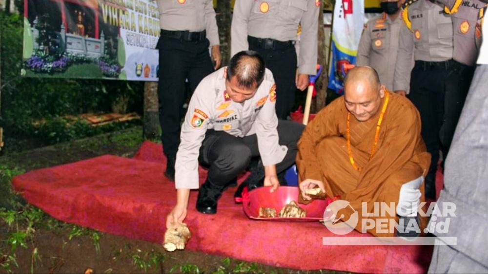 LINGKARPENA.ID – Kasetukpa Lemdiklat Polri Brigjen Pol Mardiaz Kusin Dwihananto, S.I.K., M.Hum resmi mendirikan Vihara dilingkungan Sekolah Pembentukan Perwira (Setukpa) Lemdiklat Polri Sukabumi, hal ini ditandai dengan peletakan batu pertama saat perayaan Hari Raya Galungan dan Kuningan, Rabu (8/06/2022).
