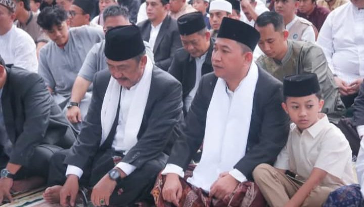 LINGKARPENA.ID | Bupati Sukabumi, H Asep Japar didampingi Wakil Bupati H Andreas serta unsur Forkopimda melaksanakan Shalat Idul fitri 1446 Hijriah/2025 Masehi di Masjid Agung Palabuhanratu, Senin (31/3/2025).