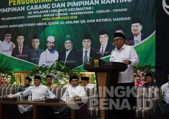 LINGKARPENA.ID | Bupati Sukabumi H. Marwan Hamami menghadiri acara pelantikan pimpinan cabang dan pimpinan Ranting Dewan Masjid Indonesia (DMI) Kabupaten Sukabumi se-wilayah I meliputi Kecamatan Palabuhanratu, Warungkiara, Bantargadung, Simpenan, Cikakak, dan Cisolok untuk masa bakti 2023-2028.