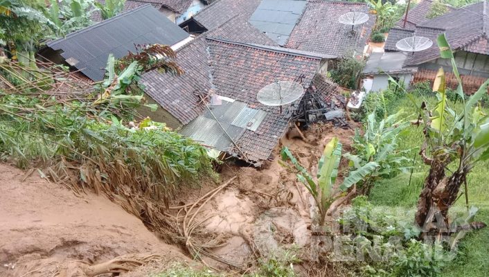 LINGKARPENA.ID | Cuaca ekstrem yang melanda wilayah Sukabumi dan sekitarnya menyebabkan tebing pohon bambu pada salah satu kebun tergerus longsor dan menimpa menimpa rumah warga Kecamatan Ciambar.