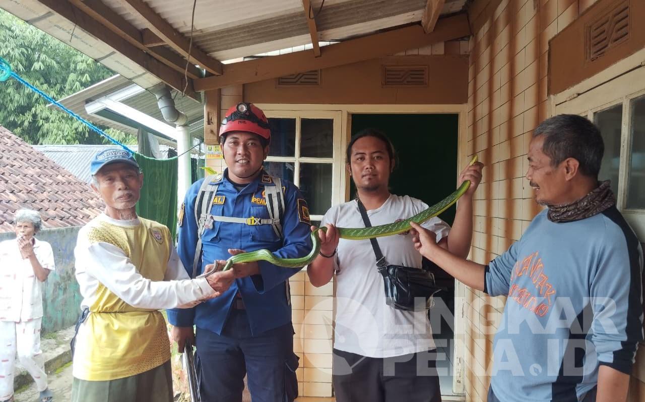 LINGKARPENA.ID | Petugas Dinas Pemadam Kebakaran dan Penyelamatan (Damkar) Kabupaten Sukabumi Pos Cibadak kembali melakukan pelayanan non kebakaran berupa animal rescue, dengan mengevakuasi seekor ular yang berada di plafon rumah warga di Kampung Neglasari, Desa Cibadak, Kecamatan Cibadak, Kabupaten Sukabumi, Senin (9/2/2026).