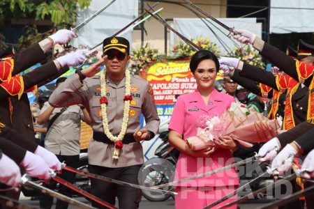 LINGKARPENA.ID | Suasana penuh khidmat menyelimuti Mapolres Sukabumi Kota saat AKBP Ardian Satrio Utomo menginjakkan kaki untuk pertama kalinya sebagai Kapolres Sukabumi Kota, Rabu (7/1/2026). Kedatangan perwira menengah Polri tersebut bersama Ketua Bhayangkari Cabang Sukabumi Kota disambut secara resmi melalui prosesi adat kepolisian, yakni tradisi gerbang pora.