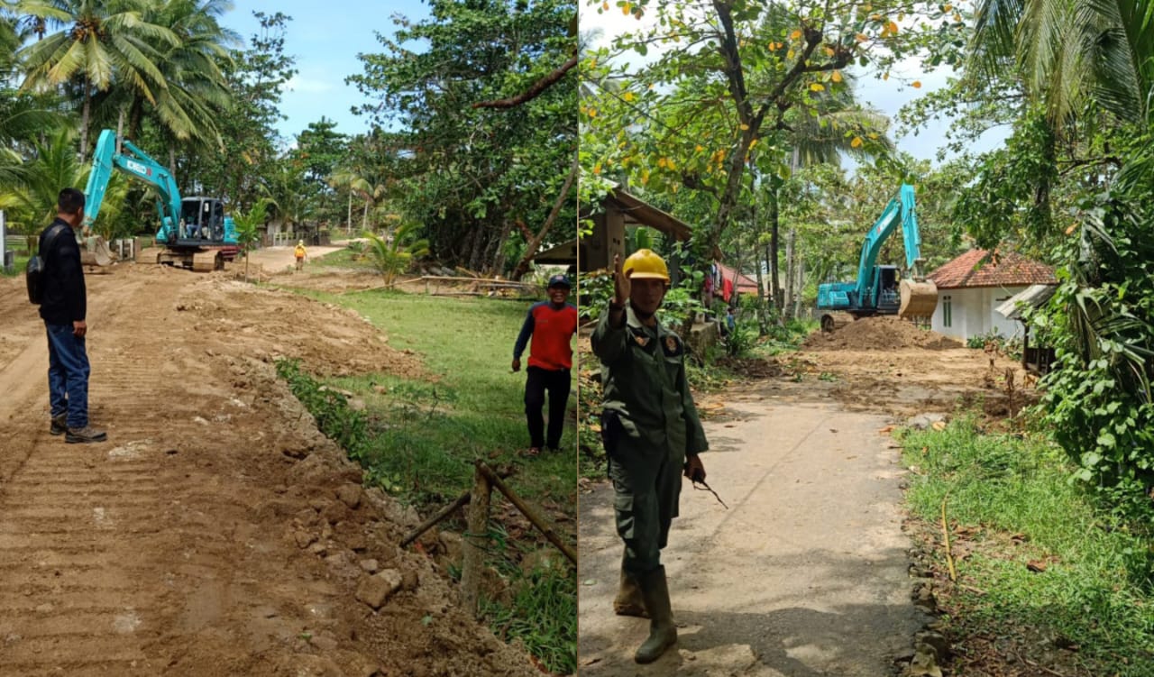 FOTO: Perbaikan dan pelebaran jalan menuju Pantai Wisata Minajaya, Desa Buniasih, Kecamatan Surade, melalui Dinas Pariwisata Kabupaten Sukabumi.| Istimewa