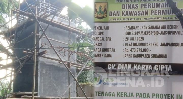 LINGKARPENA.ID | Pemerintah Kabupaten Sukabumi melalui Dinas Perumahan dan Kawasan Permukiman (Disperkim) terus berupaya meningkatkan kualitas hidup masyarakat di pedesaan. Salah satu langkah nyatanya adalah pembangunan sarana air bersih di Desa Bojongsari, Kecamatan Jampangkulon, yang kini tengah berlangsung.