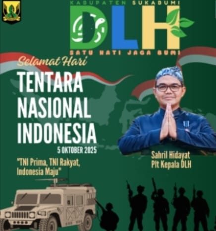 LINGKARPENA.ID | Dinas Lingkungan Hidup (DLH) Kabupaten Sukabumi mengucapkan selamat atas peringatan Hari Tentara Nasional Indonesia (TNI) yang ke-80, bertepatan dengan tanggal 5 Oktober 2025.