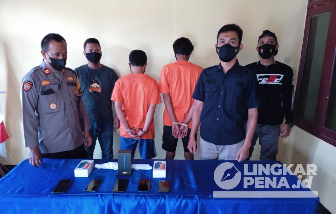 Pelaku berhasil ditangkap setalah terlebih dahulu di pancing melalui transaksi jual beli online. Saat di diperiksa terdapat Handphone yang diduga kuat itu barang hasil kejahatan bahkan identik dengan laporan korban.