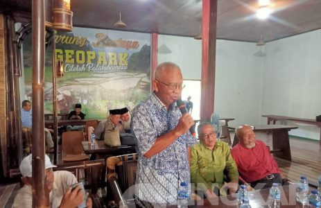 FOTO: Mantan Bupati Sukabumi Sukmawijaya saat menerima kehadiran Bcalon Bupati Sukabumi Iyos Somantri bersama relawan (BAIS).| dok. Jajang S