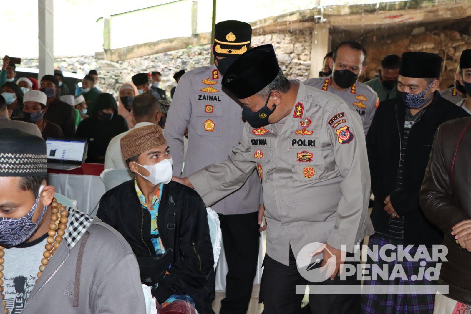 LINGKARPENA.ID – Kapolda Jabar Irjen Pol Suntana, tinjau kegiatan vaksinasi massal dan berikan paket sembako di Pondok Pesantren Judatul Uqba (Pajada) di Desa Sukamekar Kecamatan Sukaraja Kabupaten Sukabumi, Selasa, 23 November 2021 pagi.