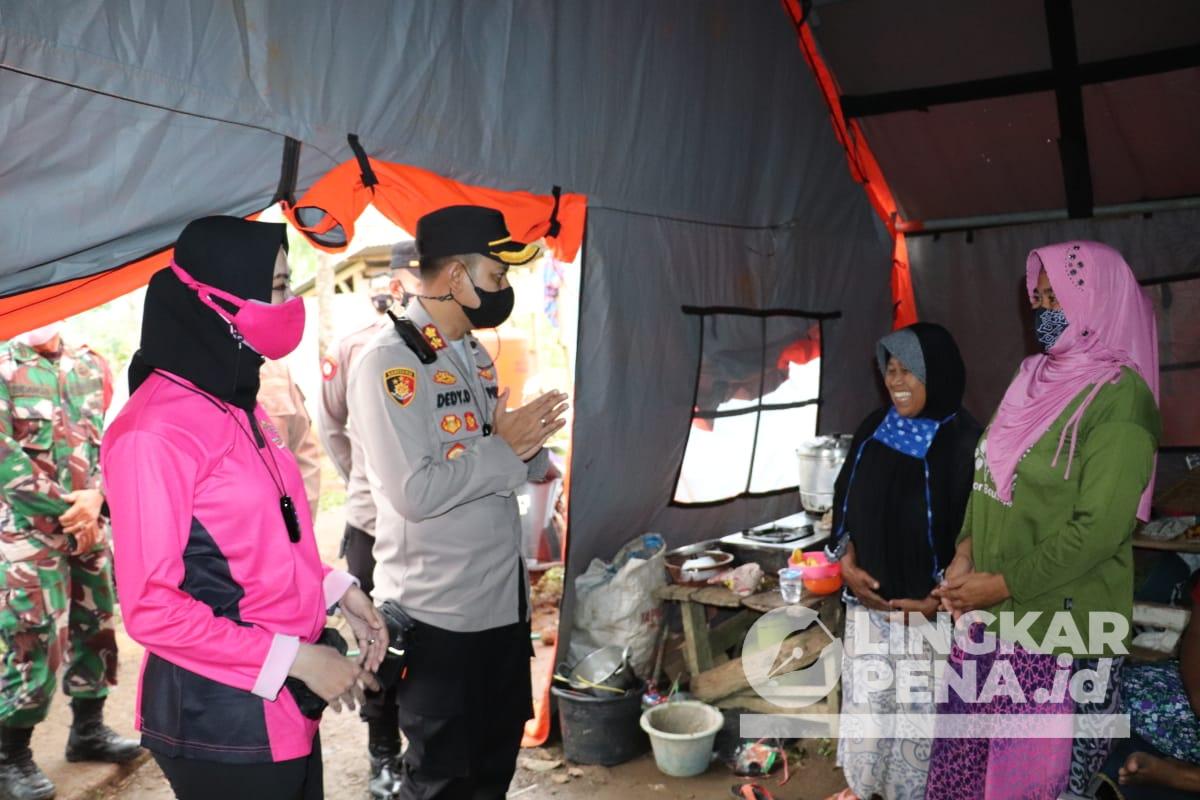 Lingkarpena.id, SUKABUMI – Kapolres Sukabumi AKBP Dedy Darmawansyah dampingi Ketua Bhayangkari Sukabumi melakukan kunjungan ke lokasi pengungsian korban bencana pergeseran tanah di Desa Margaluyu, Kecamatan Purabaya, Jumat (06/11).