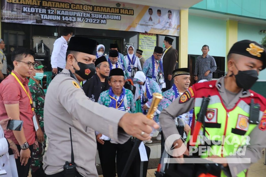 LINGKARPENA.ID – Kapolres Sukabumi AKBP Dedy Darmawansyah langsung memimpin pengamanan keberangkatan jemaah haji asal Kabupaten Sukabumi. Kegiatan terpusat di Asrama Haji Kabupaten Sukabumi, Cikembang, Kecamatan Cikembar, Sabtu, (11/06/22).