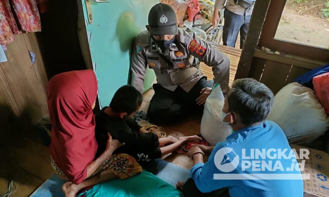 Pada saat menjenguk keluarga tersebut Kapolsek Surade AKP Asep Sundana juga memberikan bantuan jenis sembako kepada keluarga Ihsan.