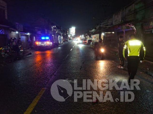 LINGKARPENA.ID | Kecelakaan lalu lintas terjadi di Jalan Raya Cisaat, tepatnya di depan Klinik Mantri Otoh, Desa Nagrak, Kecamatan Cisaat, Kabupaten Sukabumi, pada Sabtu (18/10/2025) malam sekitar pukul 22.50 WIB. Insiden tersebut melibatkan dua sepeda motor dan menyebabkan satu orang meninggal dunia serta dua lainnya luka-luka.