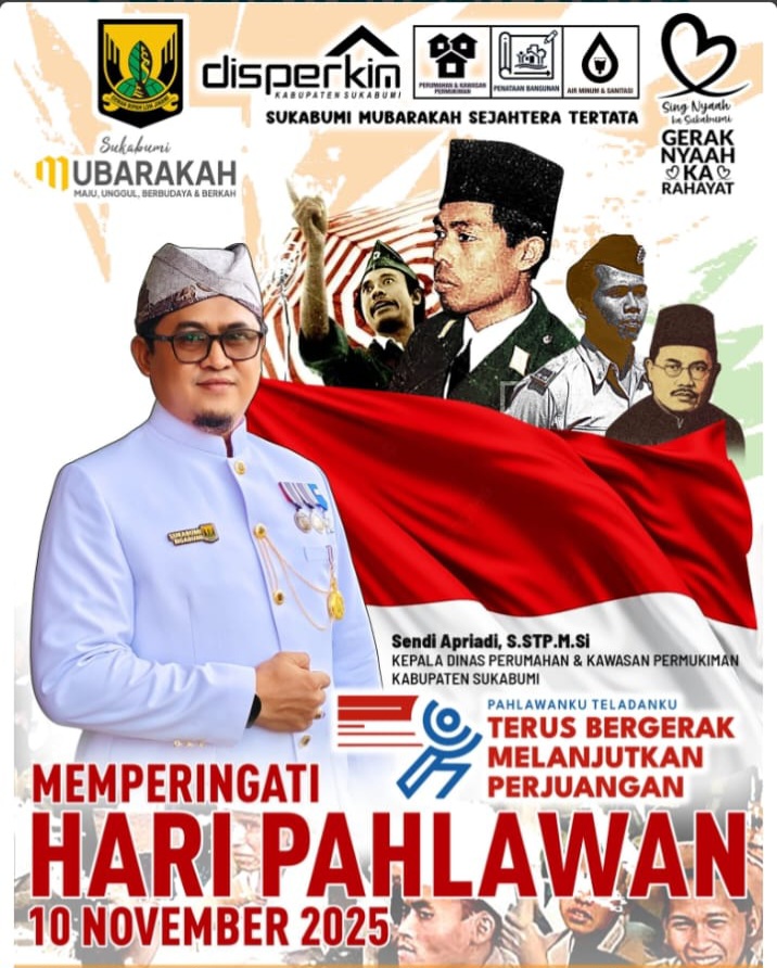 LINGKARPENA.ID | Kepala Dinas Perumahan dan Kawasan Permukiman (Disperkim) Kabupaten Sukabumi, Sendi Apriadi, menyampaikan ucapan selamat memperingati Hari Pahlawan Nasional, yang jatuh pada 10 November 2025.