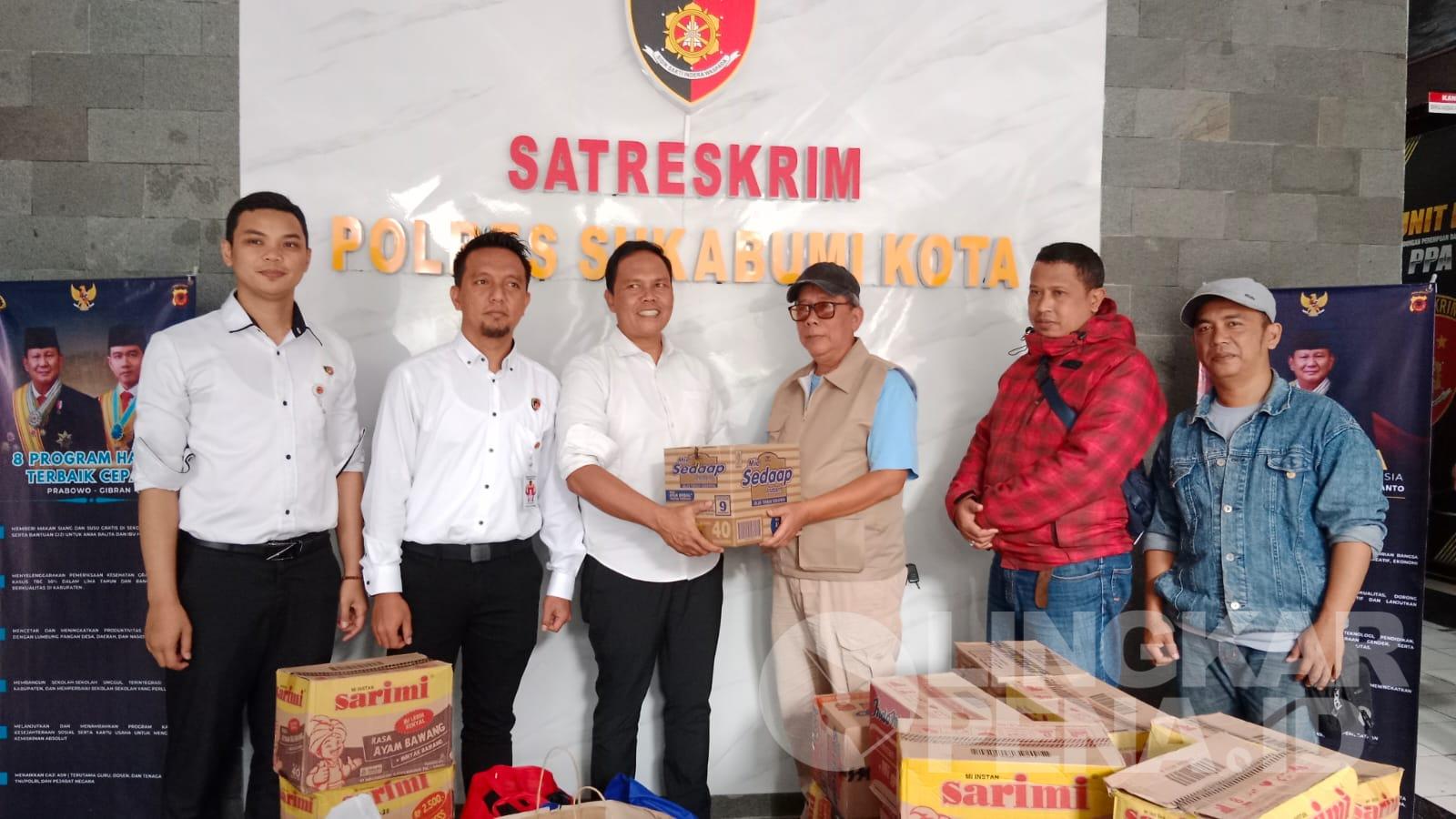 Pada kolaborasi ini, PWI menerima titipan bantuan logistik berupa makan instan dari Polres Sukabumi Kota, Senin (16/12/24).
