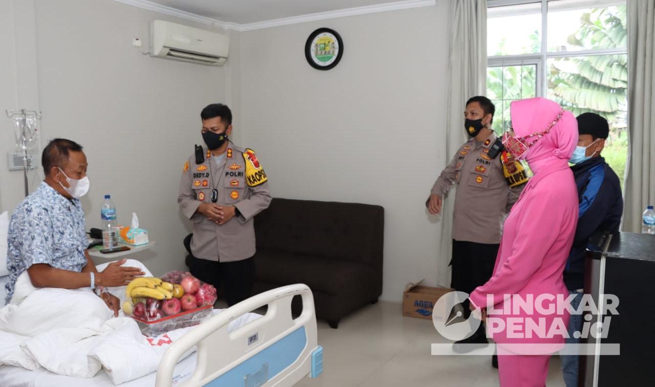 LINGKARPENA.ID – Kapolres Sukabumi, AKBP Dedy Darmawansyah bersama Ketua Bhayangkari Cabang Sukabumi Ny Hesti Dedy menjenguk salah satu anggota Polsek Cicurug, Rabu (29/12/2021). Diketahui personel polisi sedang terbaring sakit dan rawat di Rumah Sakit Bhakti Medicare, Kecamatan Cicurug, Kabupaten Sukabumi.