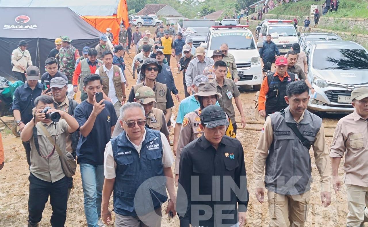 LINGKARPENA.ID | Menteri Lingkungan Hidup Hanif Faisol Nurofiq tinjau lokasi terdampak bencana di Kecamatan Pabuaran, Kabupaten Sukabumi, Minggu, 15 Desember 2024.