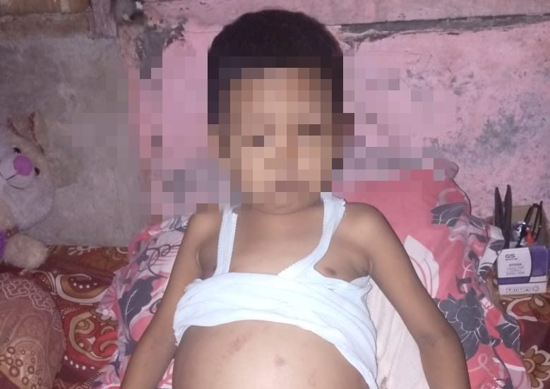 FOTO: Beginilah kondisi Bocah 11 Tahun Dafa, warga Cirendeng Kecamatan Cikakak Kabupaten Sukabumi dengan kondisi perut buncit.| Istimewa
