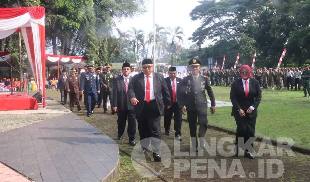 Dalam kesempatan itu, Dandim 0622 Letkol Kav Andhi Ardana Valeriandra, bertindak selaku Inspektur Upacara dan Ketua DPRD Kab Sukabumi Budi Azhar Mutawali membacakan pesan pesan Pahlawan.