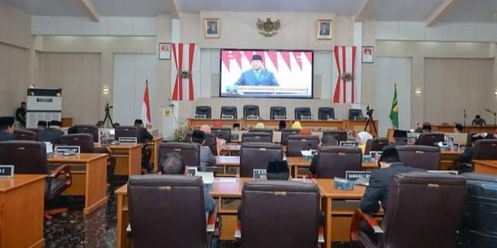 LINGKARPENA.ID | Pemerintah Kabupaten Sukabumi bersama DPRD mendengarkan pidato kenegaraan Presiden Republik Indonesia Prabowo Subianto dalam rangka peringatan HUT ke-80 Kemerdekaan RI. Pidato tersebut disaksikan melalui siaran televisi di Ruang Rapat Paripurna DPRD Kabupaten Sukabumi, Jumat (15/8/2025).
