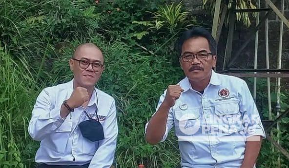 Ketua PWI Kabupaten Sukabumi Asep Solihin (kanan) bersama Ketua SMSI Sukabumi Raya Sule Sulaeman (kiri).| Foto: Istimewa