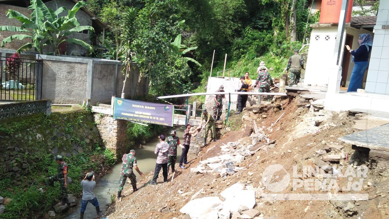 LINGKARPENA.ID – Di HUT Infanteri Ke-73 tahun 2021, jajaran Koramil 2208/Nyalindung menggelar kegiatan bakti sosial penataan Tembok Penahan Tanah (TPT). Kegiatan dilaksanakan di Masjid Jami Nurul Falah, Kampung Cijangkar RT 03/07 Desa Cijangkar, Kecamatan Nyalindung, Kabupaten Sukabumi, Kamis, 16 Desember 2021.
