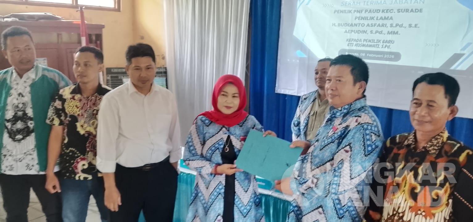 LINGKARPENA.ID | Kegiatan pisah sambut sekaligus serah terima jabatan empat penilik Pendidikan Anak Usia Dini (PAUD) di Wilayah VI Jampangkulon, Kabupaten Sukabumi, digelar di SD Jagamukti, Kecamatan Surade, pada Minggu (8/2/2026).