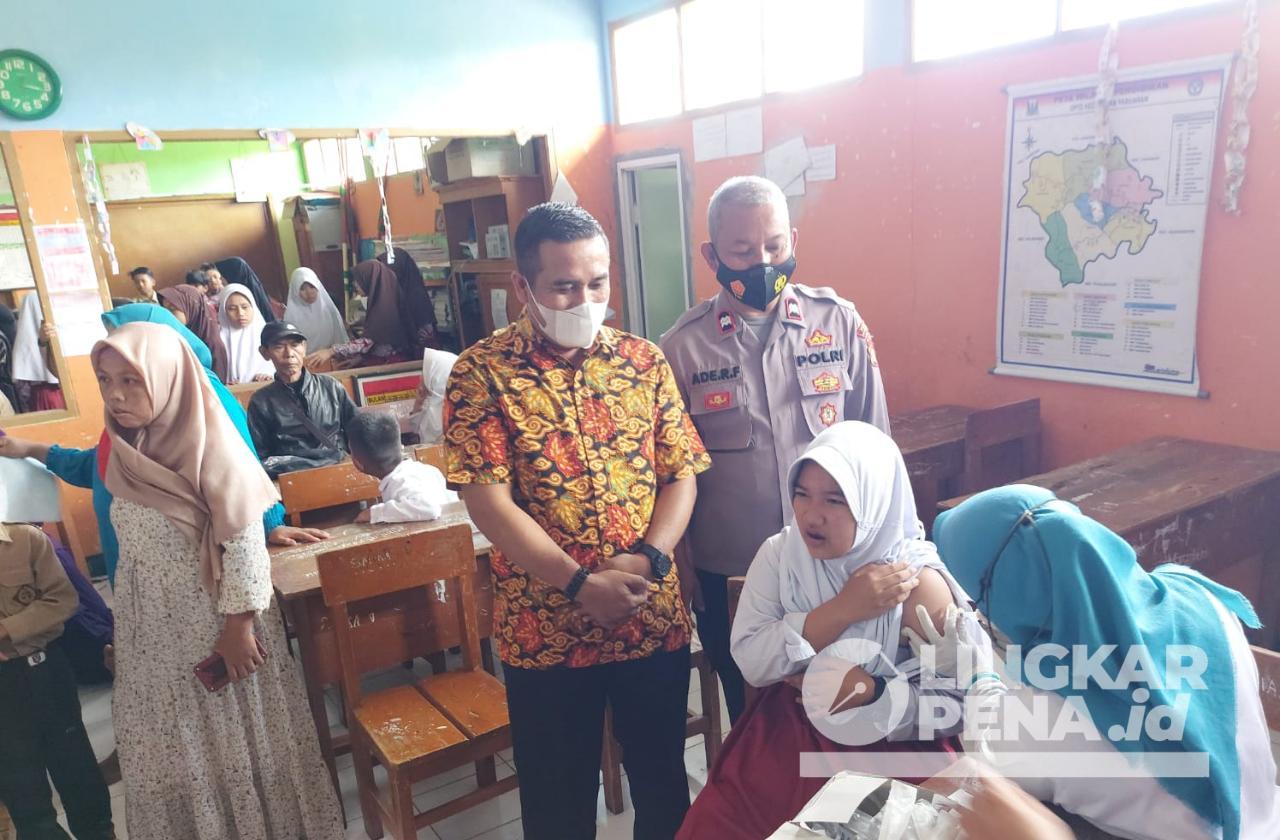 Kapolsek Lengkong AKP Acep Sujana menerangkan, vaksinasi kali ini masih dalam program Vaksin Merdeka Anak yang di laksanakan di SDN Cibungur Desa Cibadak Kecamatan Pabuaran.