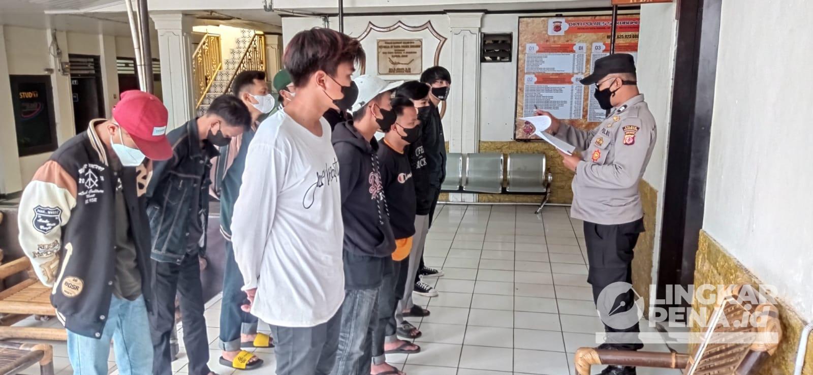 Beberapa nama anggota geng motor yang tidak terindikasi kejadian beberapa hari laku diwajibkan lapor ke Polres Sukabumi Kota. Dan sebagian anggota saat dilakukan pembinaan pada Jumat (29/4/22).| Foto: Istimewa