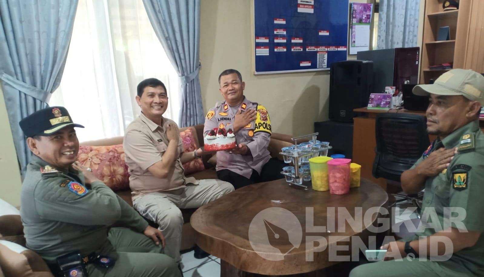 LINGKARPENA.ID | Rayakan Hari Ulang Tahun (HUT) Bhayangkara ke 79, Forum Komunikasi Pimpinan Kecamatan (Forkopimcam) Surade, Kabupaten Sukabumi mendatangi Polsek Surade Polres Sukabumi dengan membawa kue tart serta ucapan selamat.