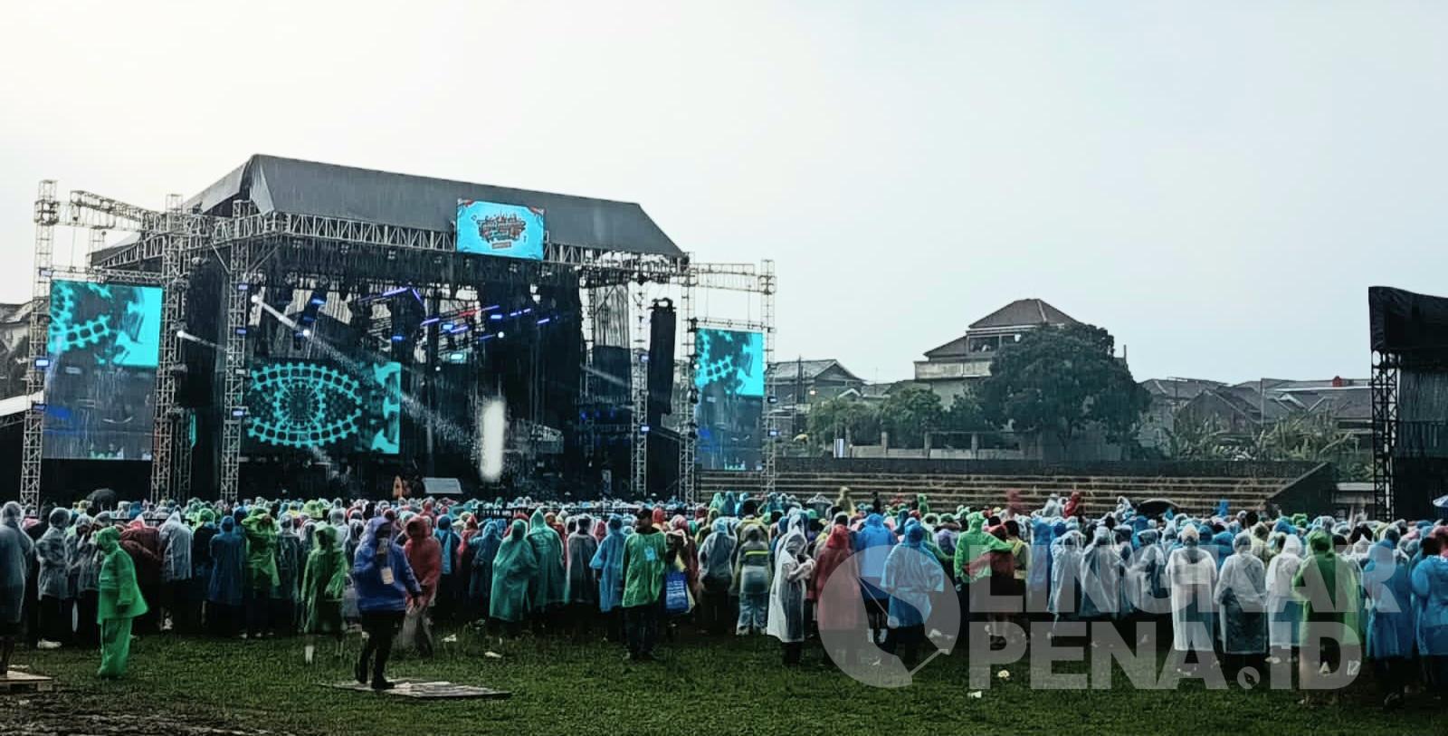 Meski hujan turun cukup deras, semangat penonton tak surut. Mereka tetap bertahan, bergoyang, dan bersorak menikmati alunan musik dari para penampil.