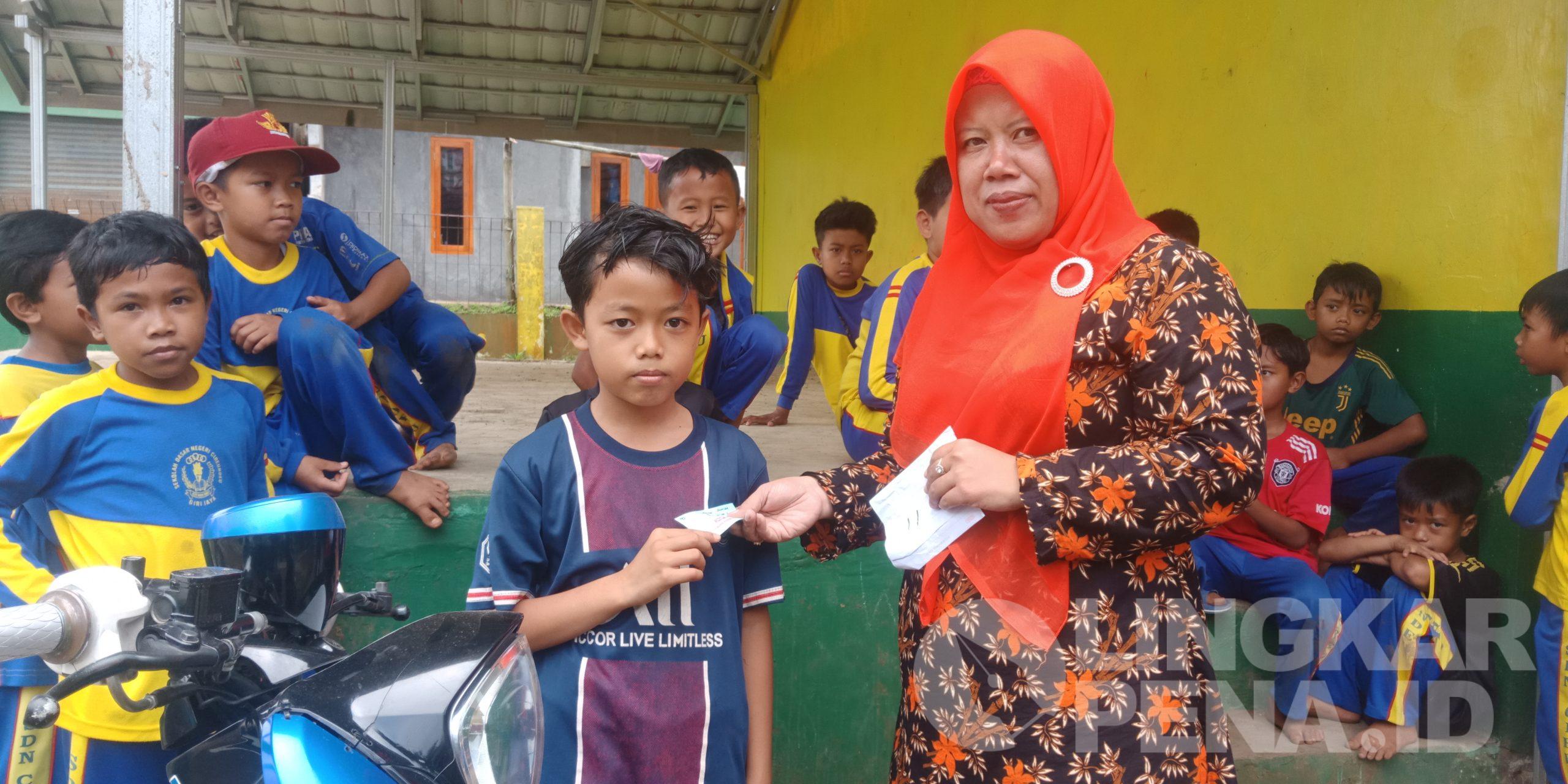GLINGKARENA.ID | Sekolah Dasar SD Negeri Cirendeu, Kecamatan Nagrak, Kabupaten Sukabumi, membagikan tiket untuk bantuan murid yatim pada Kamis 20 Oktober 2022.