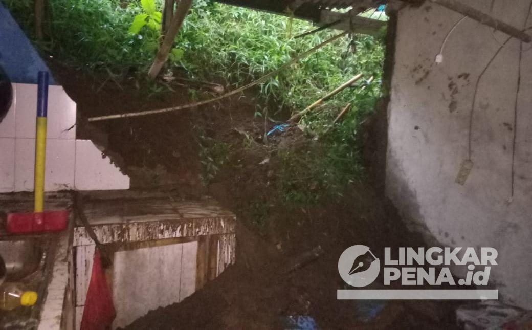 Material longsoran menimpa rumah warga milik Ade yang dihuni 4 jiwa. Longsor menimpa pada bagian dapur rumah milik Ade. Akibat longsor tersebut, dinding bagian dapur jebol sehingga material longsoran menutup ruangan dapur itu.
