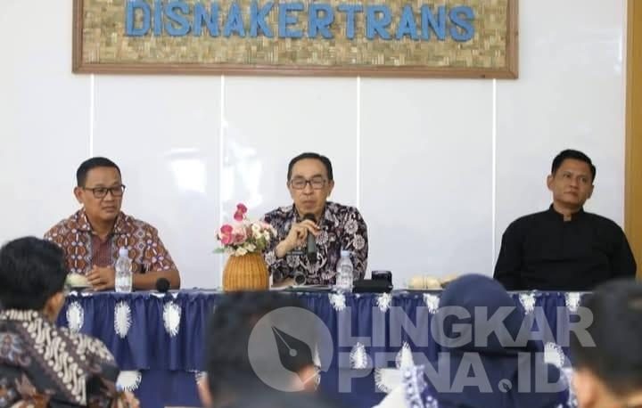 LINGKARPENA.ID | Sekretaris Daerah (Sekda) Kabupaten Sukabumi, Ade Suryaman, memimpin Rapat Koordinasi Implementasi Percepatan Penyaluran Kredit Usaha Rakyat (KUR) pada Kamis (23/10/2025) di Aula Dinas Tenaga Kerja dan Transmigrasi (Disnakertrans), Jalan Palabuan II, Sukabumi.