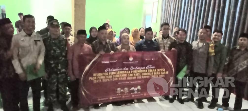 LINGKARPENA.ID | Panitia Pemungutan Suara (PPS) Desa Neglasari, Kecamatan Lengkong, Kabupaten Sukabumi, resmi melantik 63 anggota Kelompok Penyelenggara Pemungutan Suara (KPPS). Kegiatan tersebut ditandai dengan pengucapan sumpah jabatan seluruh ketua maupun anggota KPPS serta penandatanganan sumpah jabatan.