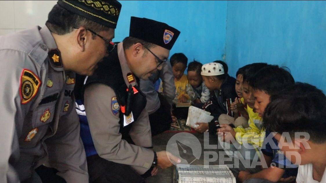 LINGKARPENA.ID | Tim BKO (bawah kendali operasi) Polres Sukabumi Kota mengaji bareng dengan sejumlah anak-anak korban bencana gempa bumi di salah satu lokasi pengungsian di SDN Jambudipa Desa Jambudipa, Kecamatan Warungkondang Kabupaten Cianjur, Kamis (24/11/2022).