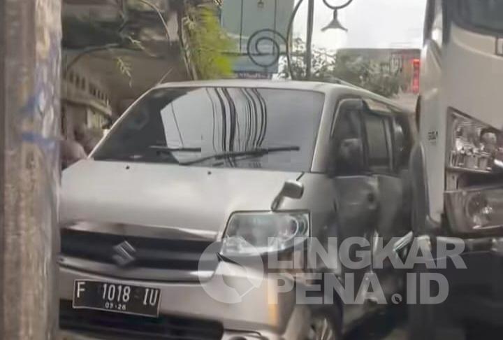 LINGKARPENA.ID | Kecelakaan lalu lintas terjadi di Jalan A. Yani, tepatnya di depan Shodai Ramen, Kelurahan Kebonjati, Kecamatan Cikole, Kota Sukabumi, pada Selasa (4/11/2025) sekitar pukul 17.30 WIB. Insiden tersebut melibatkan satu unit truk wing box tronton dengan tiga mobil minibus yang sedang terparkir di tepi jalan.