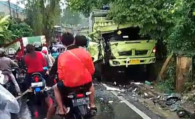 Unggahan tersebut turut menampilkan foto-foto yang memperlihatkan kondisi truk yang mengalami kerusakan parah pada bagian depannya, menandakan benturan yang cukup keras.
