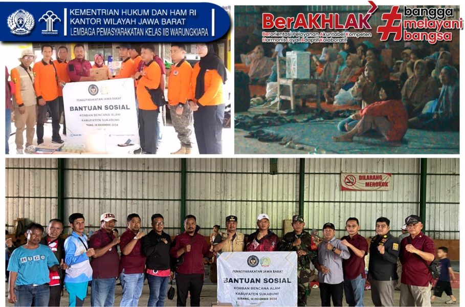 Hari itu di distribusikan bantuan sosial dari UPT Pemasyarakatan Se- Jawa Barat kepada lima titik posko bencana, yakni , Posko Bencana Kecamatan Cikembar (108 Jiwa dan 33 KK), Posko Bencana Kecamatan Bantargadung (1032 Jiwa dan 256 KK), Posko Bencana Kampung Bantarkalong (730 Jiwa dan 120 KK), Posko Bencana Kecamatan Warungkiara Kamoung Cibodas (500 Jiwa dan 80 KK), dan Posko Bencana Kecamatan Palabuhanratu (1048 Jiwa dan 261 KK).