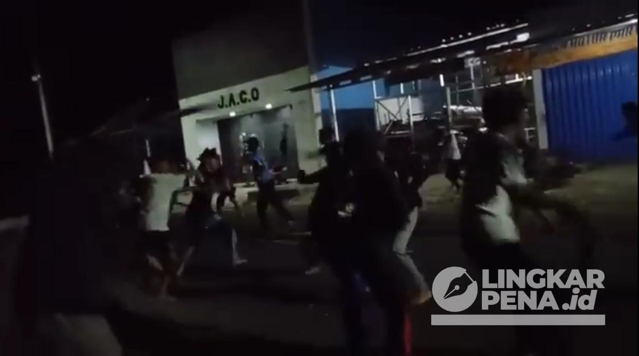 LINGKARPENA.ID – Belasan Remaja terlibat perang sarung di depan Toko JACO Jalan Nasional, Kecamatan Jampang Kulon Minggu 10 April 2022 malam.