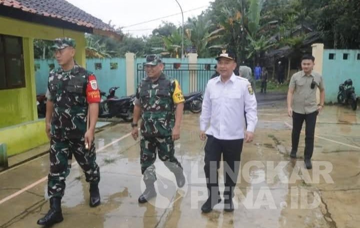LINGKARPENA.ID | Wakil Bupati Sukabumi H. Andreas mendampingi Tim Pengawasan dan Evaluasi (Wasev) Penanggung Jawab Operasional program TNI Manunggal Membangun Desa (TMMD) ke-127 Tahun Anggaran 2026 dari Kodim 0607/Kota Sukabumi saat meninjau lokasi kegiatan di Desa Parakan Lima, Kecamatan Cikembar, Kamis (5/3/2026).