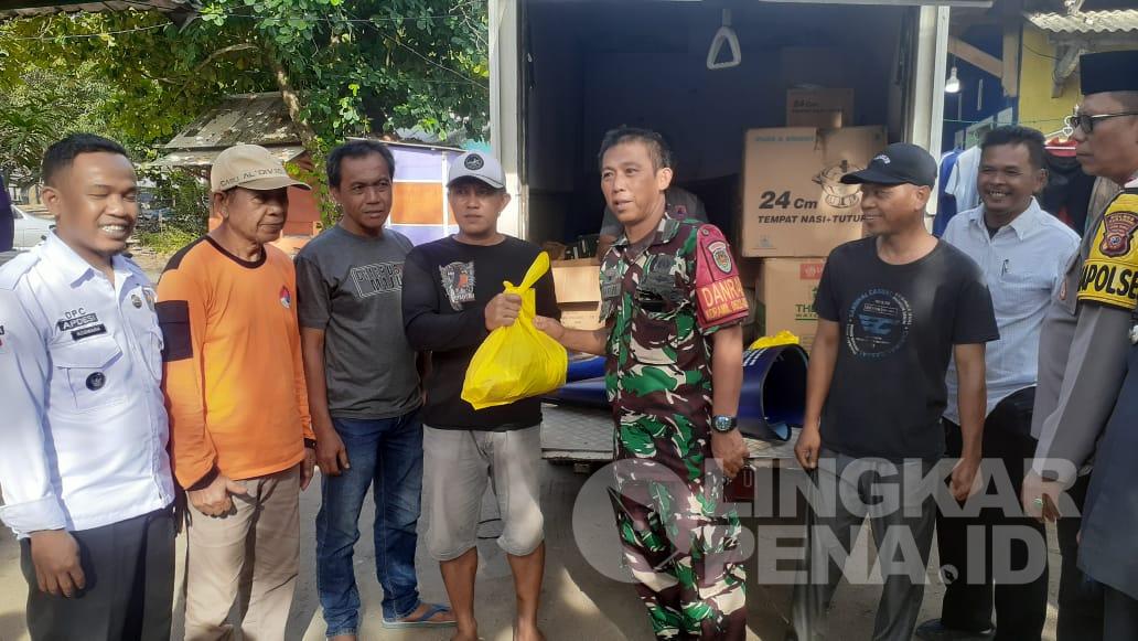 Adanya bantuan tersebut warga penerima manfaat yang merupakan korban bangunan warung dan bale bale yang rusak tampak berseri-seri setelah menerima bantuan paket sembako.