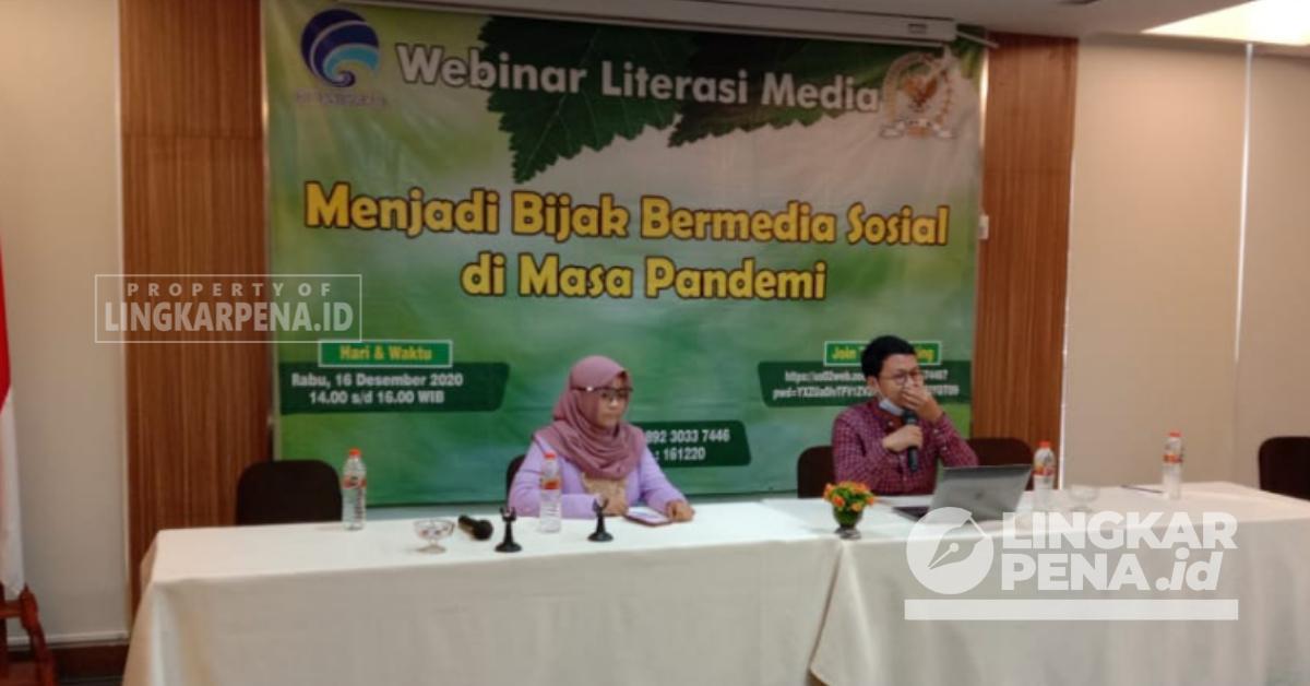 Webinar literasi media secara virtual yang mengangkat tema, menjadi bijak bermedia sosial di masa pandemi itu menghadirkan tiga narasumber. Yaitu Anggota Komisi 1 DPR RI Helmy Faishal Zaini, Direktur Jenderal Informasi dan Komunikasi Publik, Kemenkominfo Widodo Muktiyo, dan Dosen Unusia dan Founder Omah Aksoro Faris Alnizar.