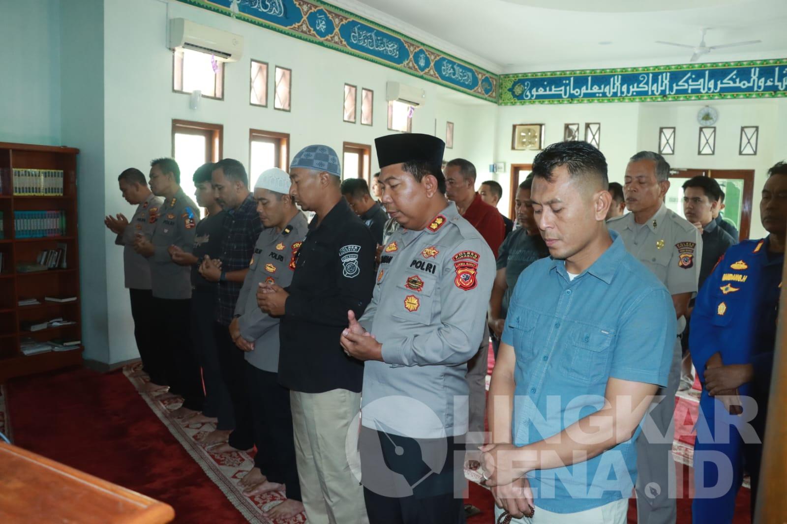 LINGKARPENA.ID | Polres Sukabumi menggelar salat gaib dan doa bersama untuk mendoakan tiga anggota polisi yang gugur dalam menjalankan tugas. Ketiga anggota yang berpulang adalah Kapolsek Negara Batin Way Kanan, Iptu Lusiyanto, Bripka Petrus Apriyanto dan Bripda M. Ghalib Surya Ganta.